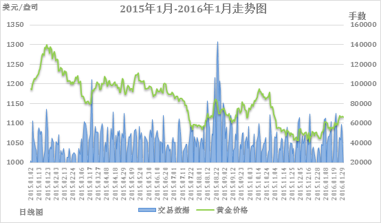 自从美联储宣布加息之后,贵金属市场空头便逐渐减弱,市场多头稳步增加,即使是在1月初公布的非农数据大幅上涨时,贵金属市场多头仍然逆势增加。黄金价格1月份之所以出现较为明显的单边多头趋势主要有以下几个原因:一、金融市场往往会对各类金融消息进行提前反应,所以当美联储还未加息时,贵金属市场空头已经大幅增加,黄金价格在美联储加息前已经多次刷新过去5年低位,市场对美联储加息的消息进行了提前消化;二、美联储加息后因为幅度和速度都没有市场预期的那么大,所以空头不具有继续增加的基础,市场便开始对前期的下行进行修正,黄金价格逐渐持稳反弹;三、1月份全球股市风险不断增加,多数股指月度跌幅均超过10%,这使得避险资金大量流入贵金属市场,黄金价格因此受助不断反弹。