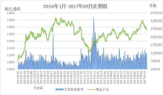 从交易活跃度上看,2017年9月份交易活跃度与7、8月份整体持平。黄金价格转空下行时,交易活跃度并未明显增加,可见此次趋势的下行更多的是市场对此前反弹的一种回调。如果未来交易活跃度继续保持,那么当美联储正式缩表时,黄金价格可能会再次区间下滑。