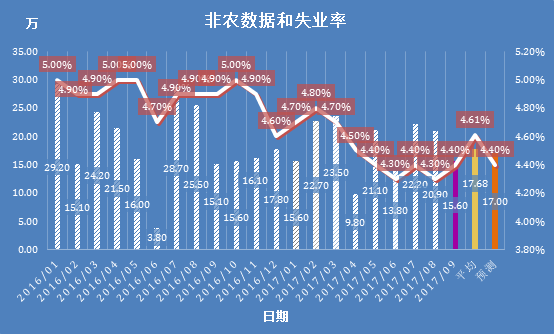 10月06日、周五 | 晚上8:30 | 美国9月份失业率和非农就业人数增加值 | 失业率或录得4.4%,非农或录得17万。 |