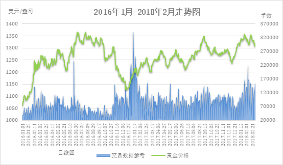 从交易活跃度上看,2月份市场反弹时交易活跃度有明显增加,尤其是当黄金价格从1350美元附近回调时,市场活跃度一度是1月份的两倍。这传递了非常明显的讯号,即1350美元附近阻力线已经成为了投资者的合理预期。即当市场一致认为黄金价格很难突破这一阻力位后,回调时追空的趋势更加容易形成,从而出现了较为活跃的交易趋势。当黄金价格逐渐回调至1300美元附近后,市场活跃度则进一步回落至区间中位。