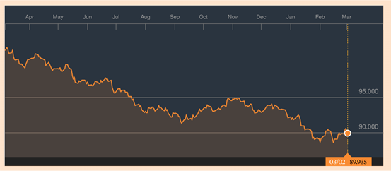 进入2018年以来,美元指数便一路下行,而且连续跌破了多个支撑位。2月份美指下行一度跌破89附近支撑位,后期市场反弹,最终持稳在89.9附近。经过2月份的调整后,美指下行暂时放缓,整体在低位持稳。未来一个月,美元指数或区间盘整,短线继续走跌的概率较低。需要特别提醒投资者的是,尽管2月份美指偏空运行,贵金属市场仍然区间回调,这显示了金价本身空头动能的内生性。